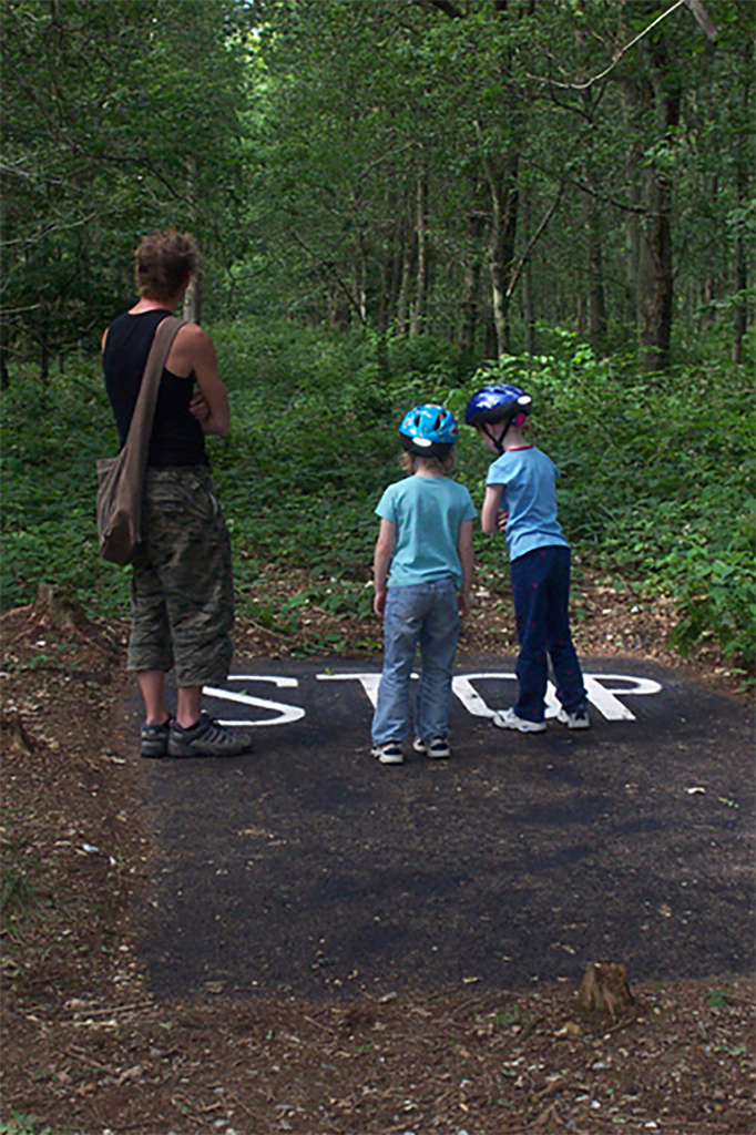A piece of road, constructed in a Sculpture Trail in a woodland in the Chiltern Hills outside Oxford. The Sculpture Trail was decommissioned in 2008. Due to the nature of my sculpture it was abandoned in the forest, leaving it to its proposed fate, to be swallowed by the forest. This is the future, this is the past…