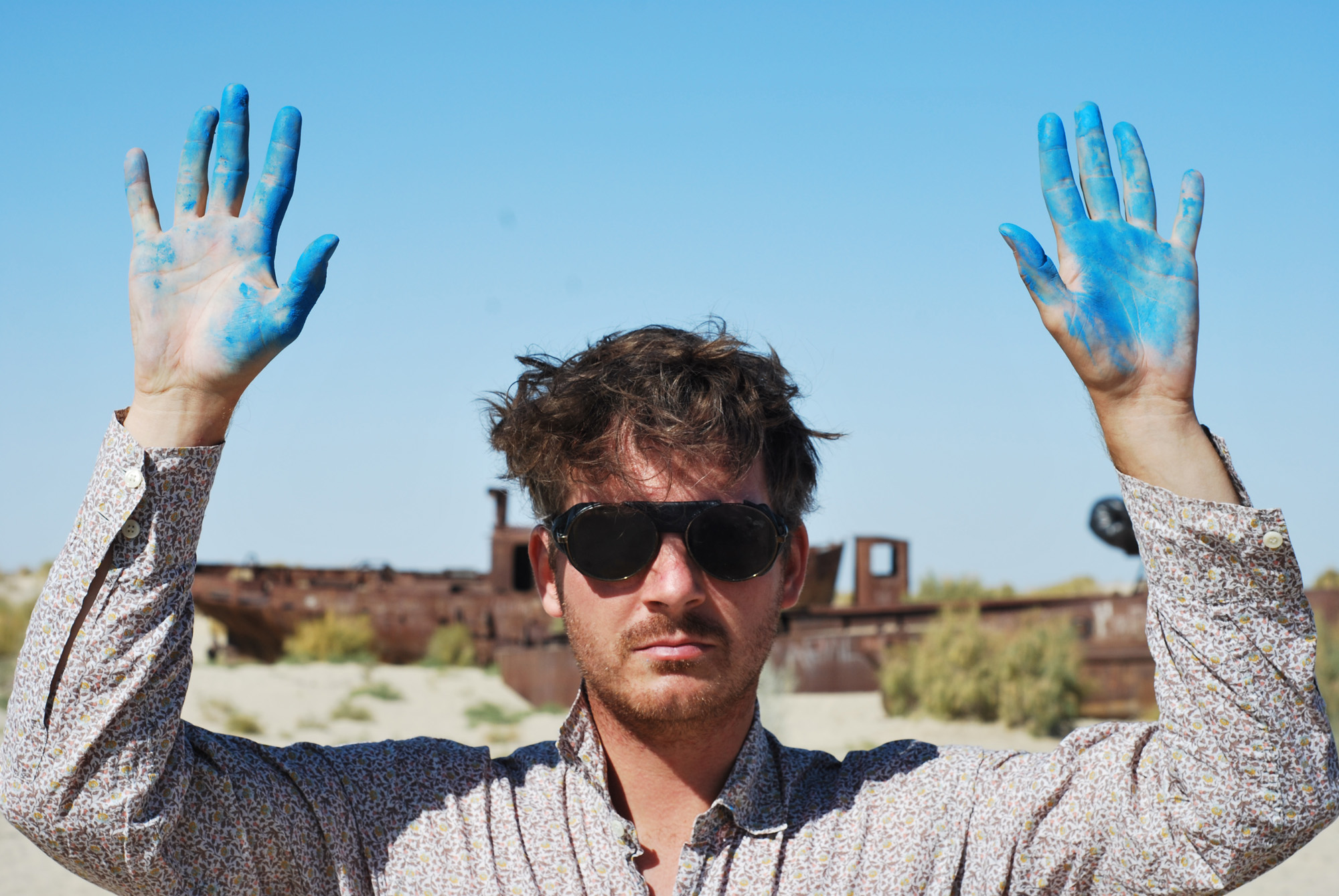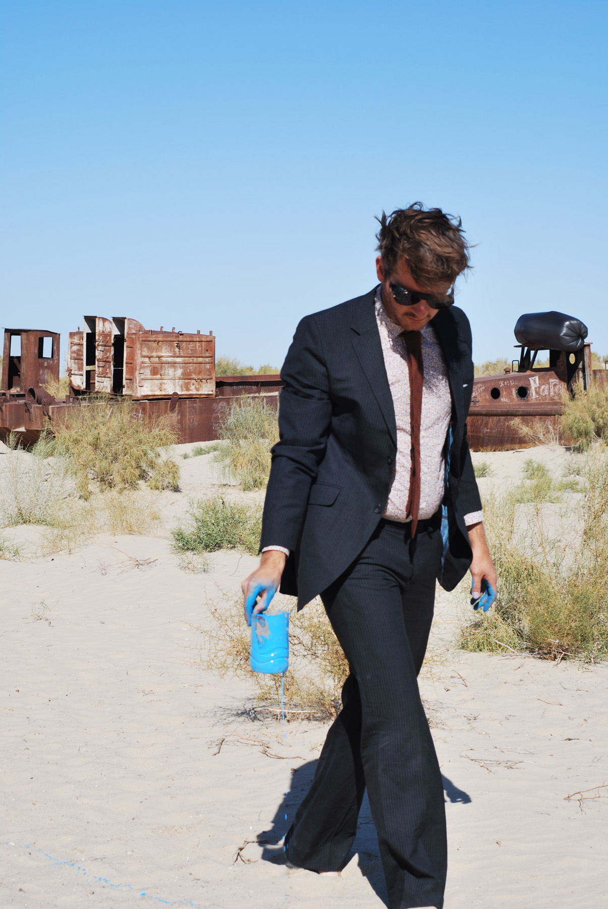 Performance on the edge of what was once the shoreline of the Aral Sea at Moynack, Uzbekistan, 2012.